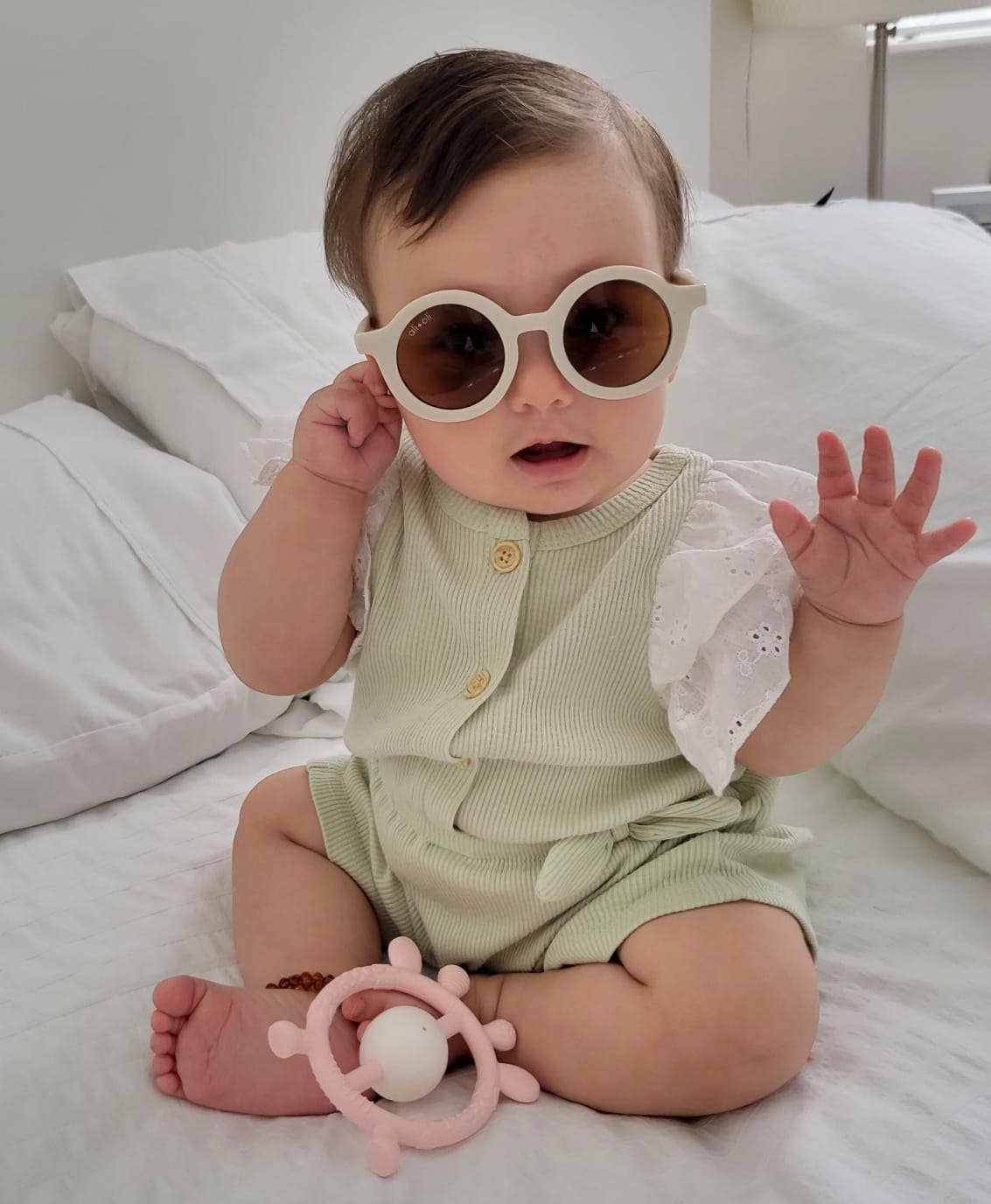 This adorable giraffe teething toy is perfect for infants just like yours to rub their gums and relieve sore gums and teething pain. This soft silicone teether is not only adorable -- it's effective. Pop it into the freezer for a few minutes for added extra soothing comfort.